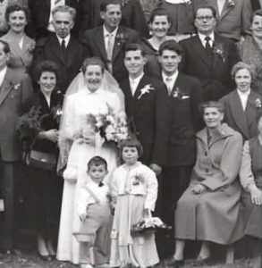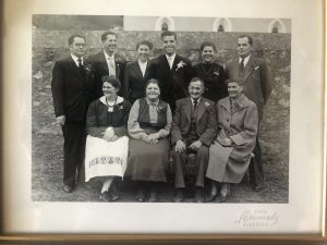 Auf dem folgenden Foto ist sie wieder ganz vorn, neben ihr die Eltern, hinten in der Mitte der Bräutigam: